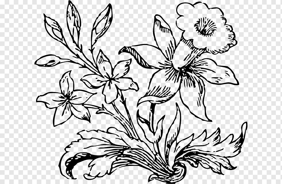 Цветы черно белые без фона