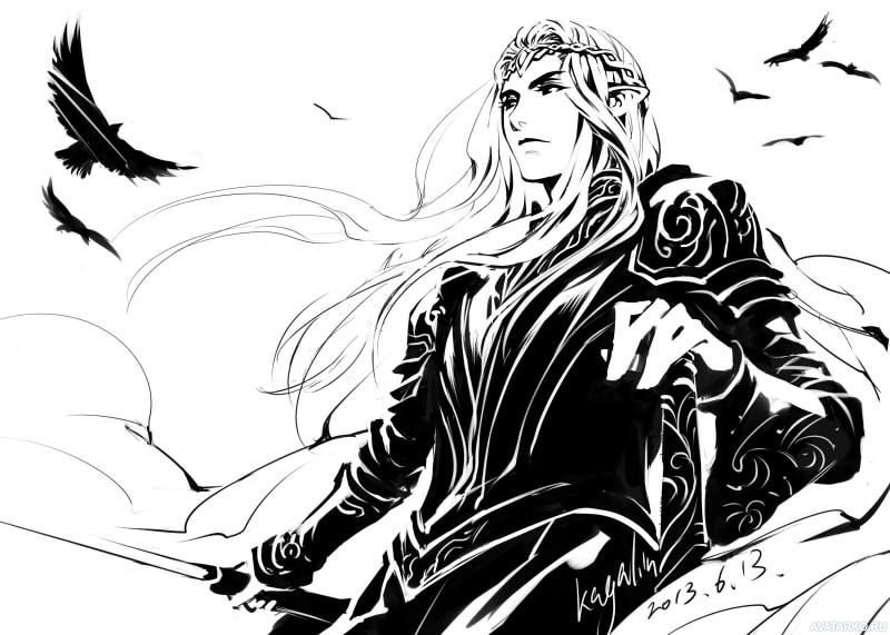 ![Хоббит Эльф Трандуил черно белая]()