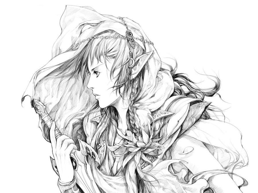 ![Эльфийки для рисования карандашом]()