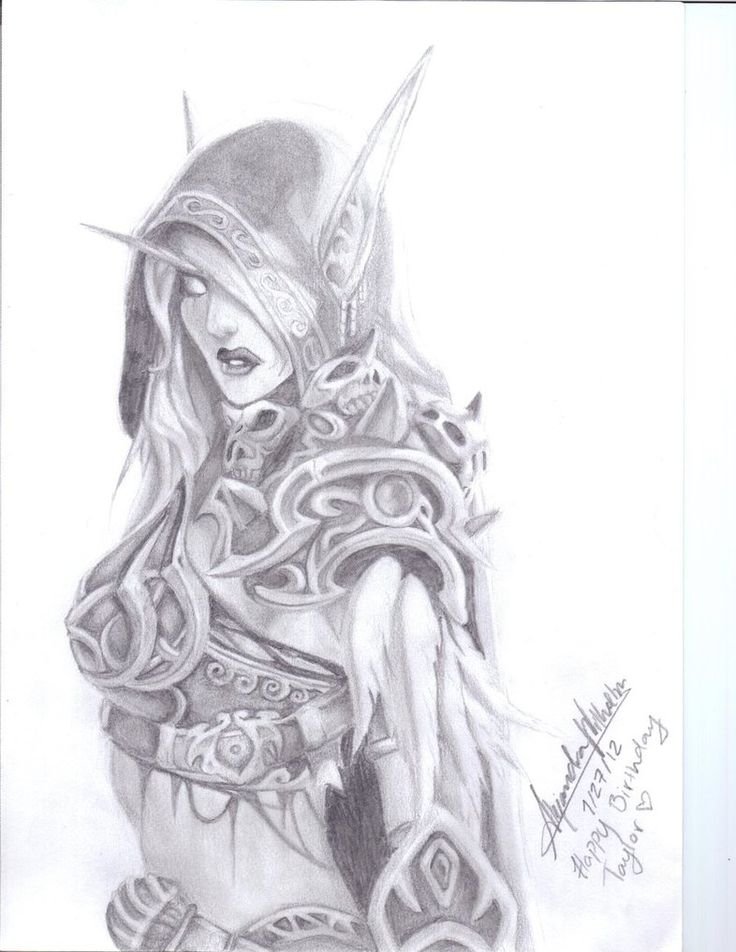![Сильвана варкрафт скетч]()