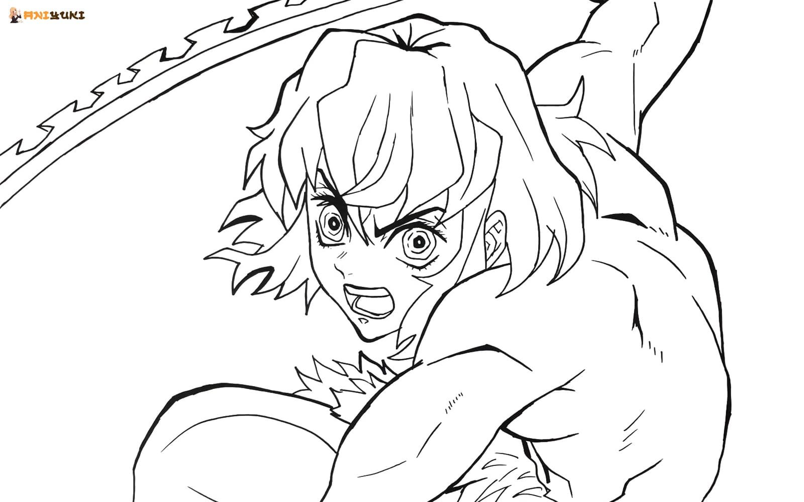 ![Раскраска аниме клинок рассекающий демонов Иноске]()