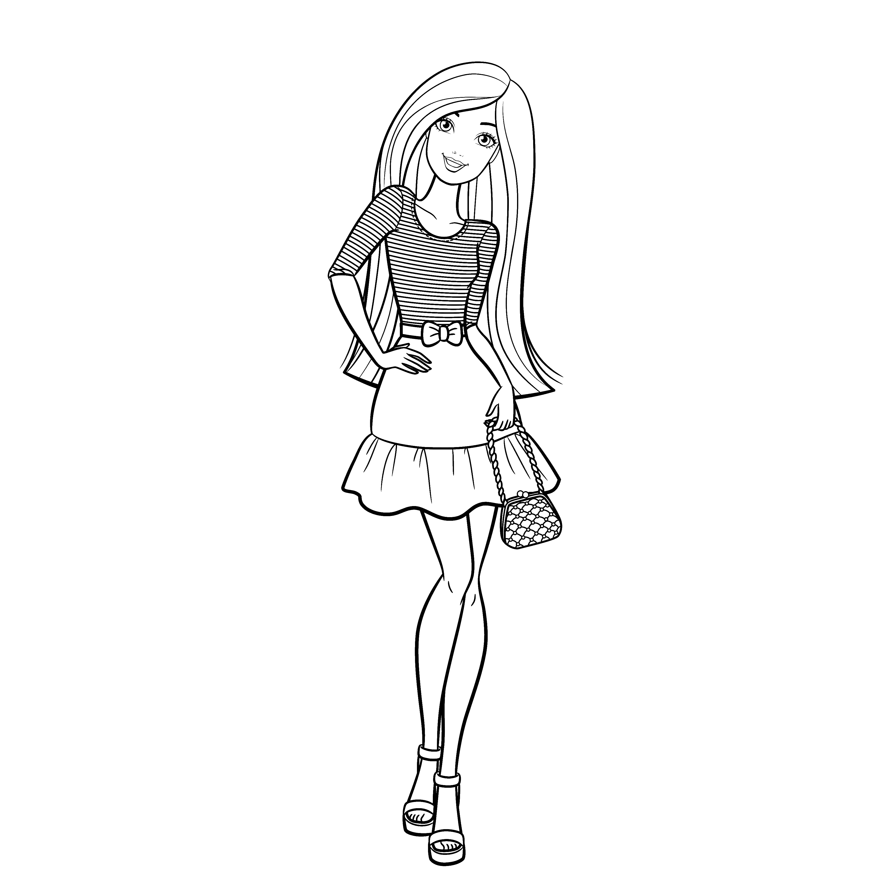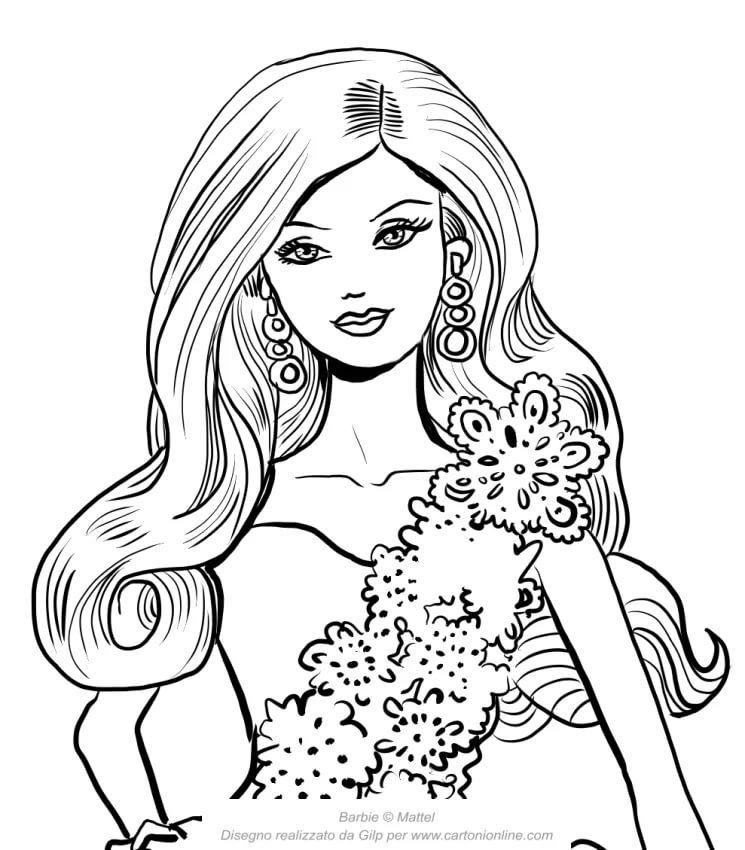 ![Кукла Барби раскраска для девочек]()