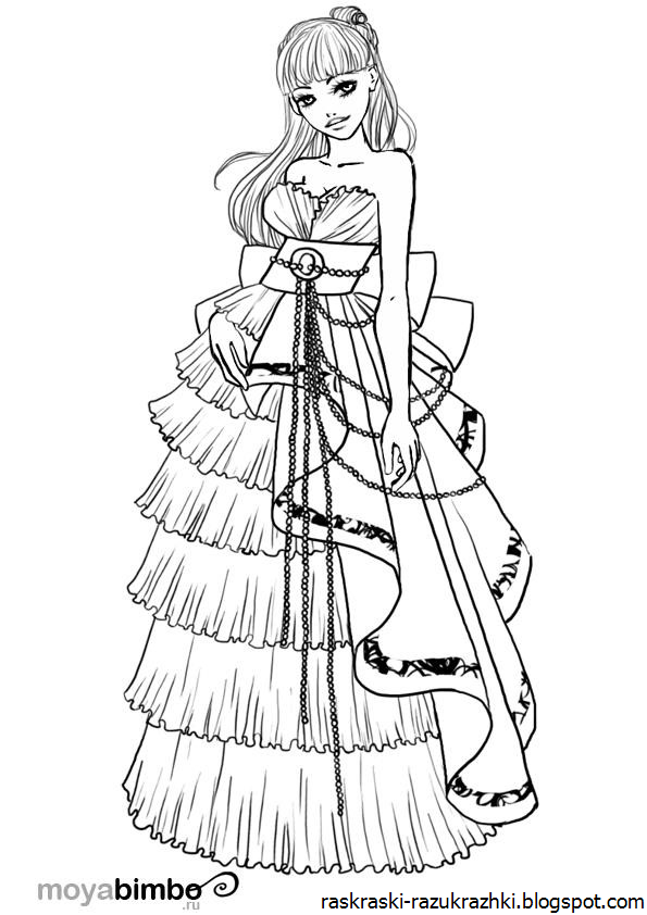 ![Раскраски куклы в бальных платьях]()