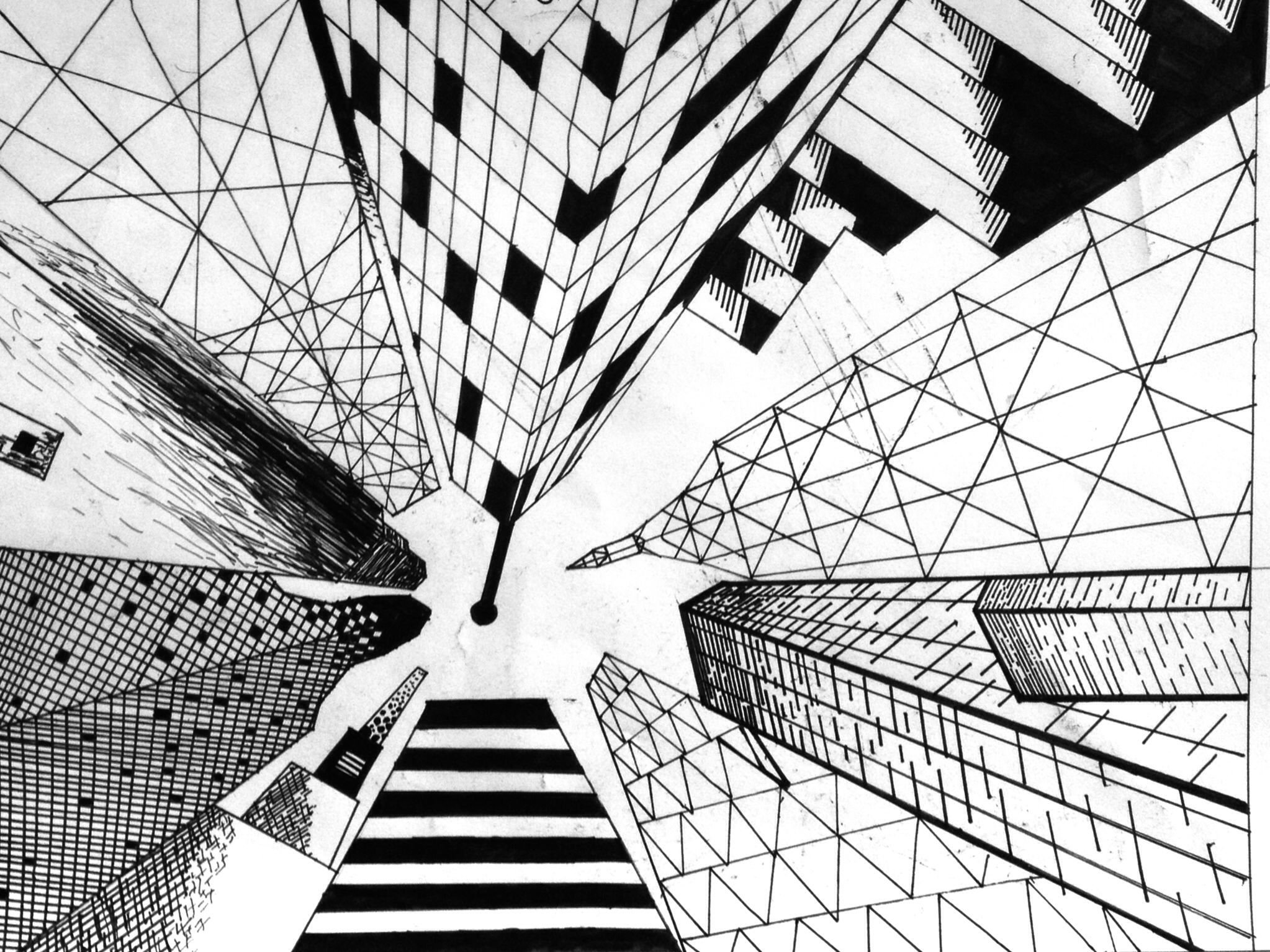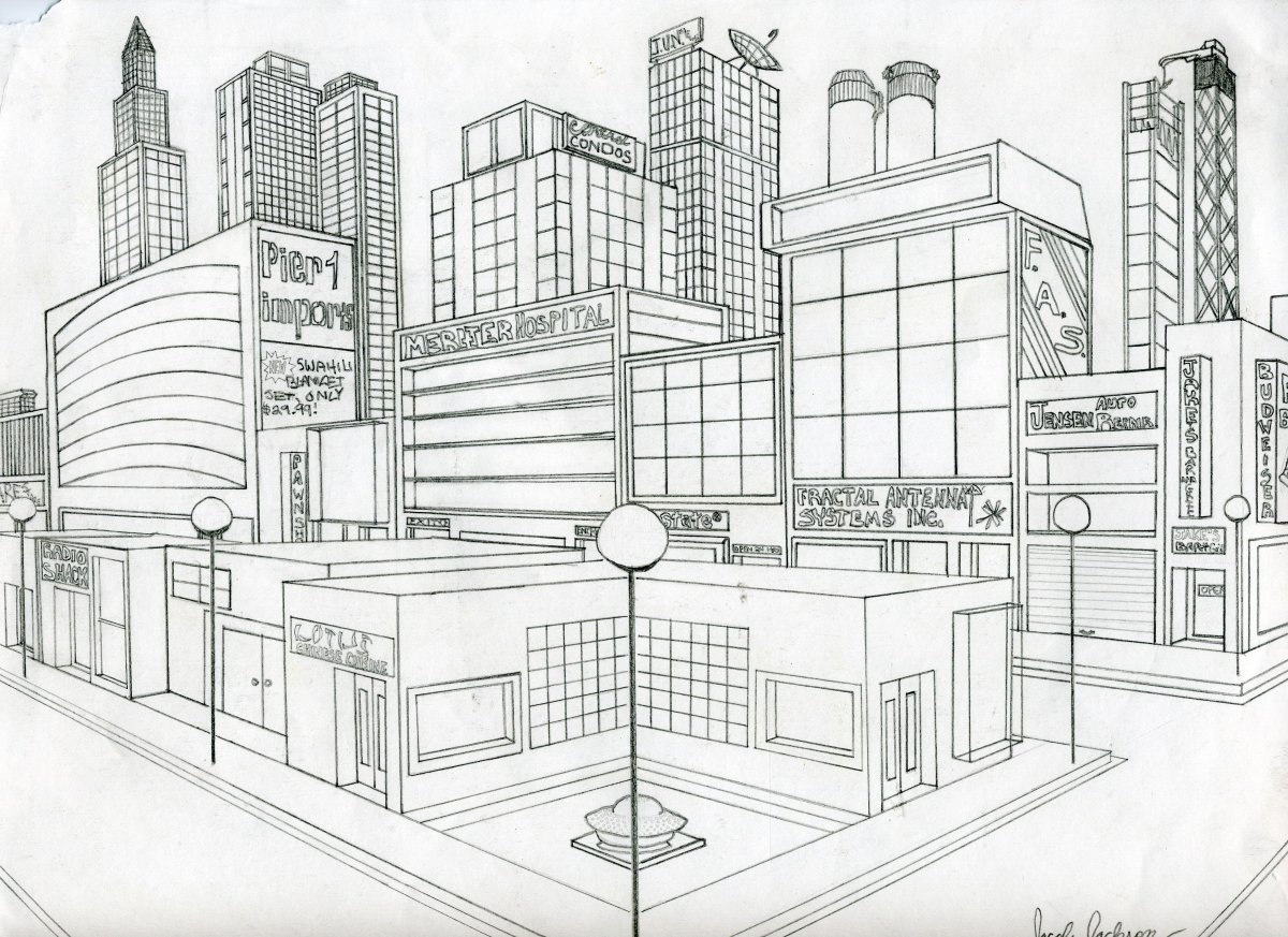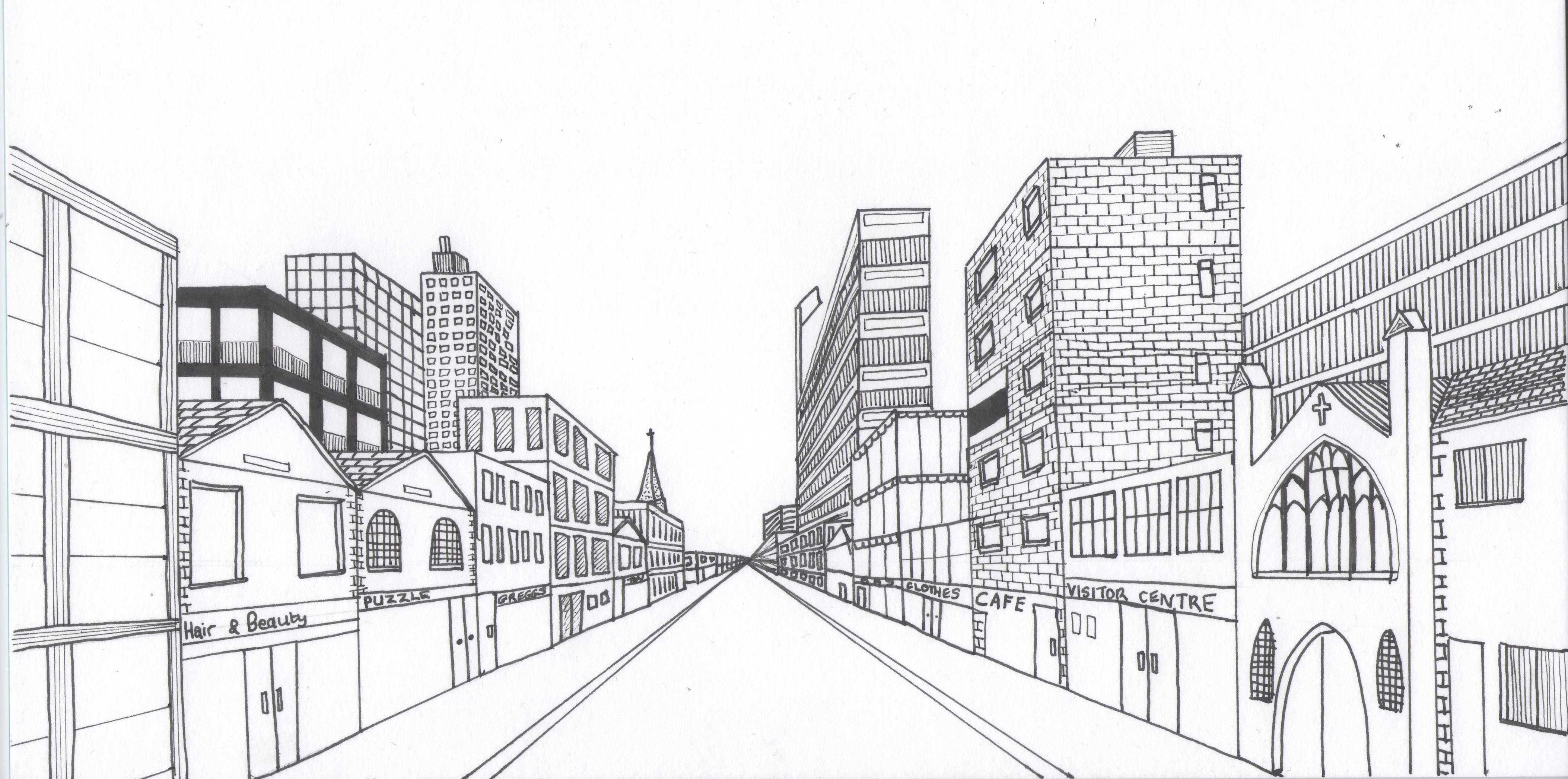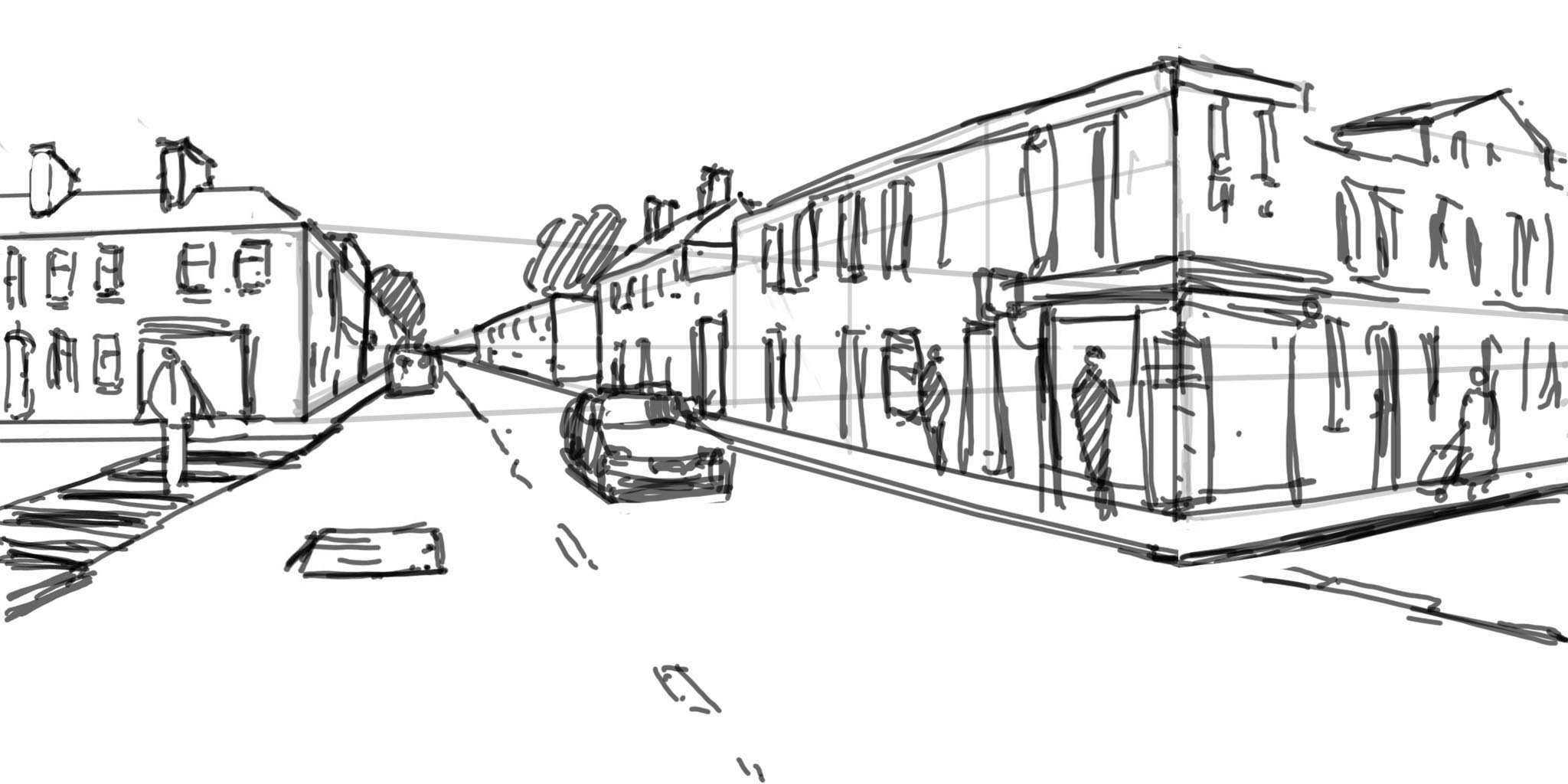 Городской пейзаж линейная перспектива скетч