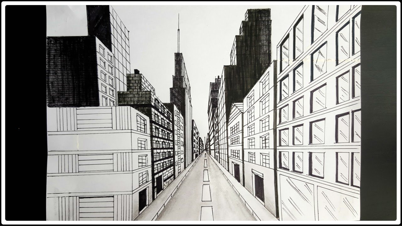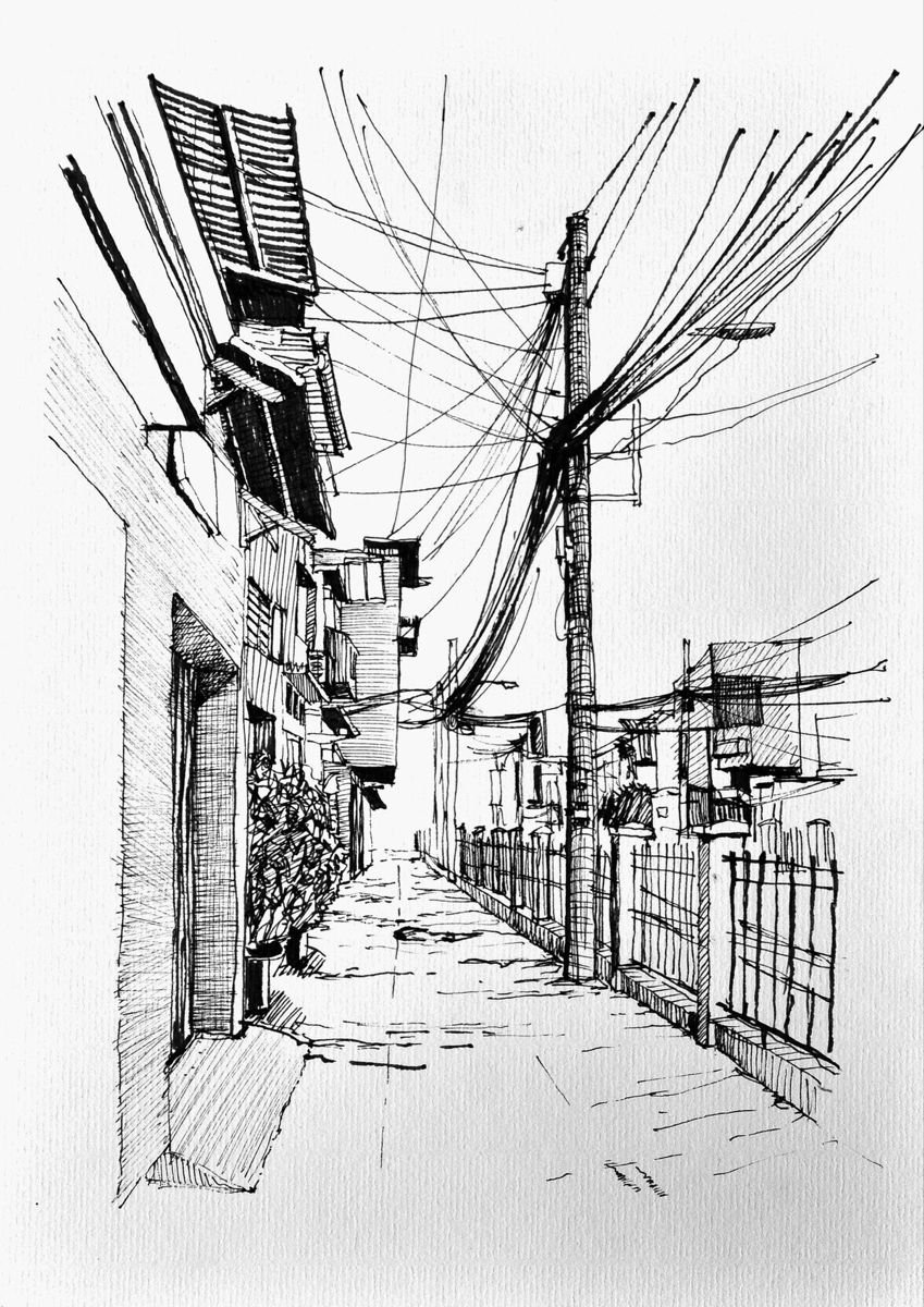 ![Городской пейзаж линейная перспектива скетч]()