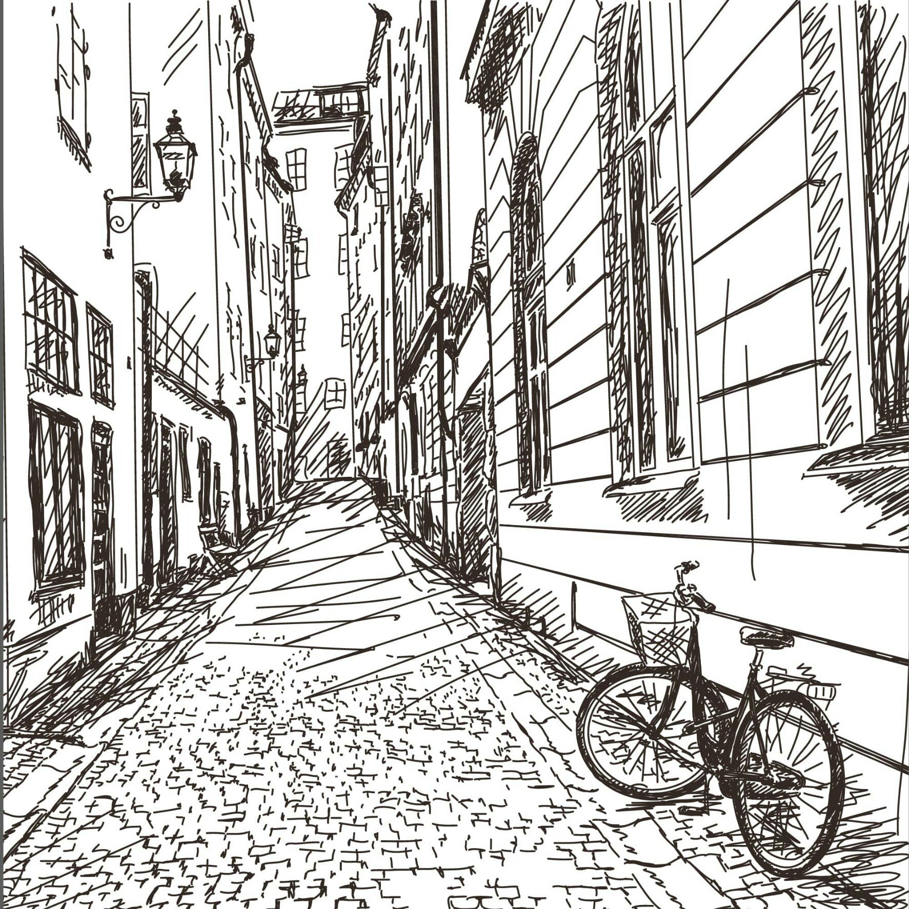 ![Скетчи улиц города]()