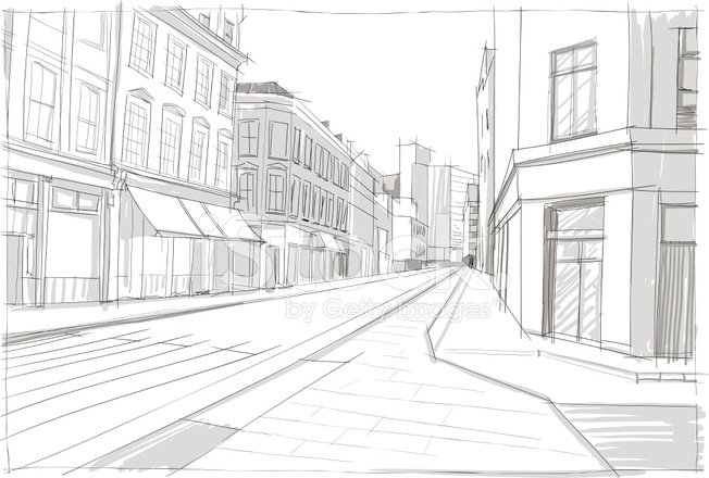 Зарисовка улицы в перспективе
