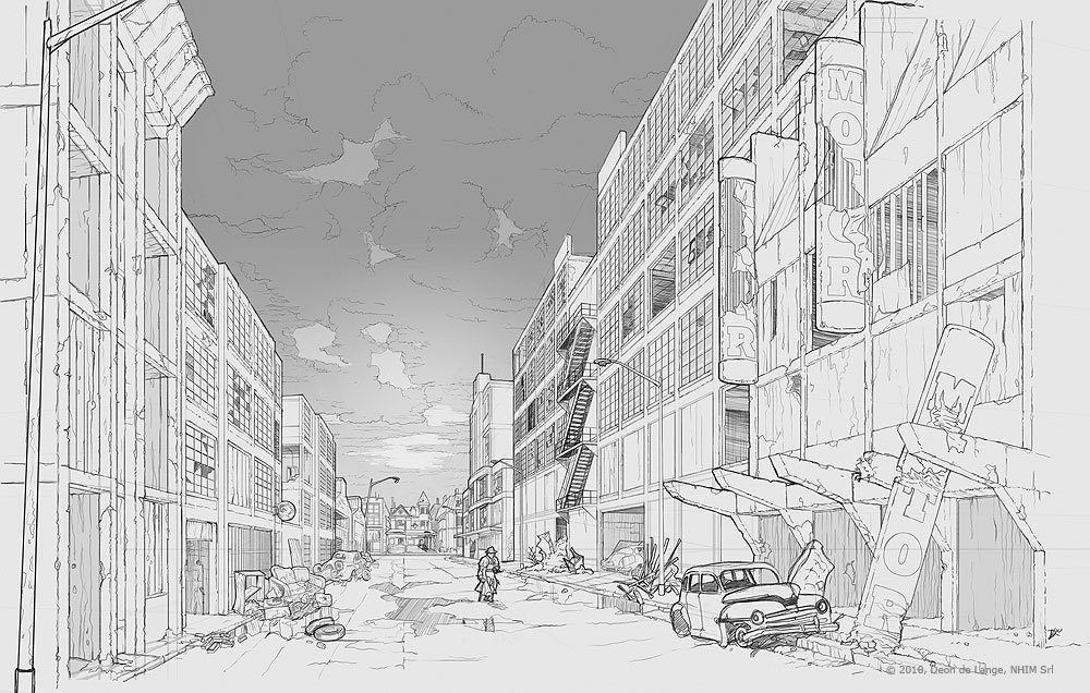 ![Город в перспективе карандашом]()