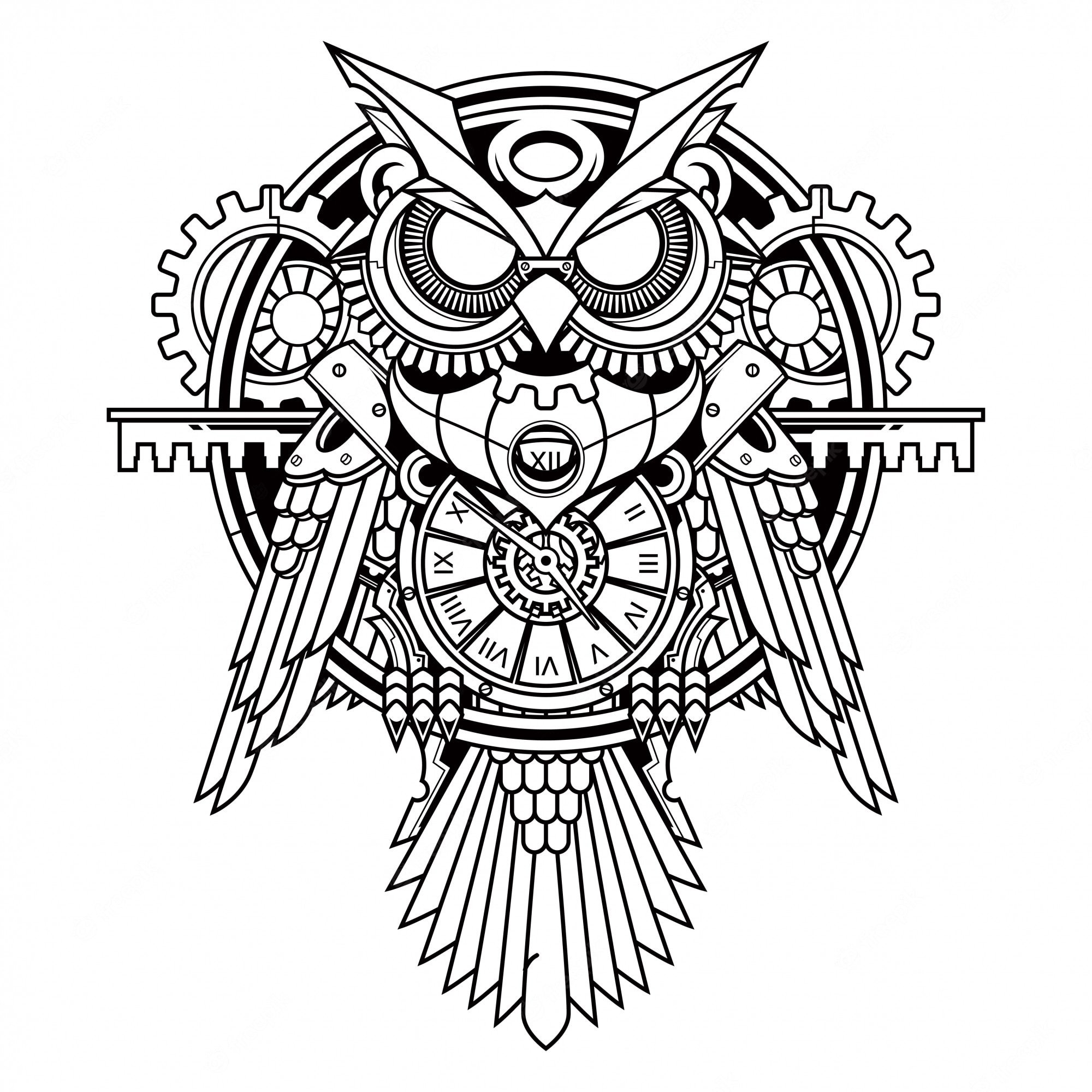 ![Сова тату стимпанк эскиз]()