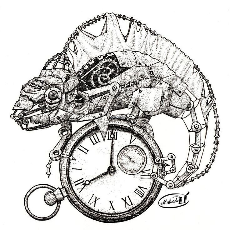![Часы в стиле стимпанк рисунок]()