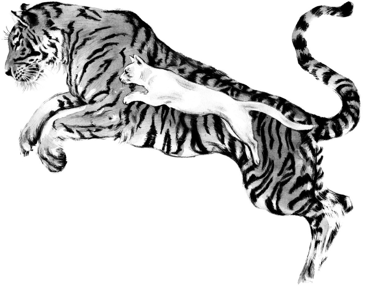 ![Силуэт тигра в прыжке]()