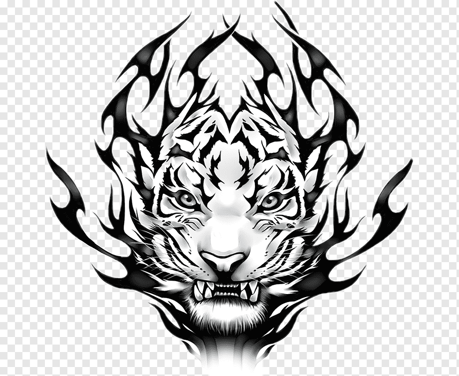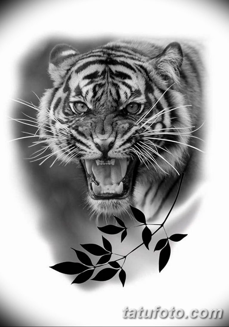 ![Тату тигра черно белое]()