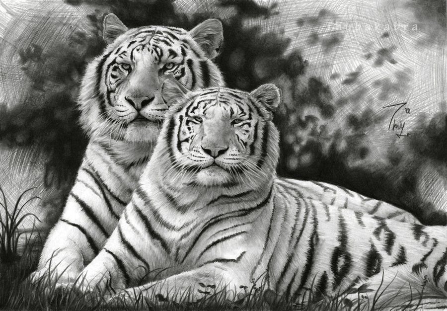 Белый тигр нарисовать