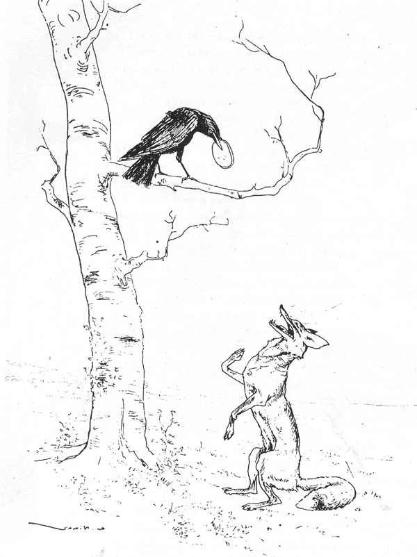 ![Иллюстрация к басне ворона и лисица карандашом]()