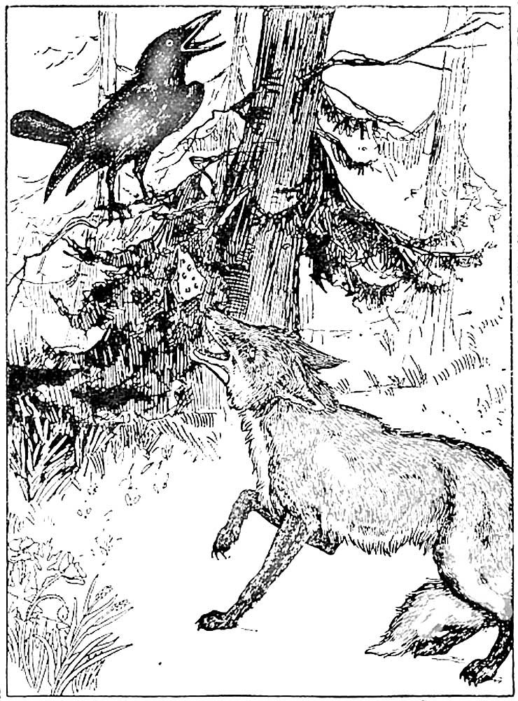 ![Иллюстрация к басне Крылова ворона и лисица]()