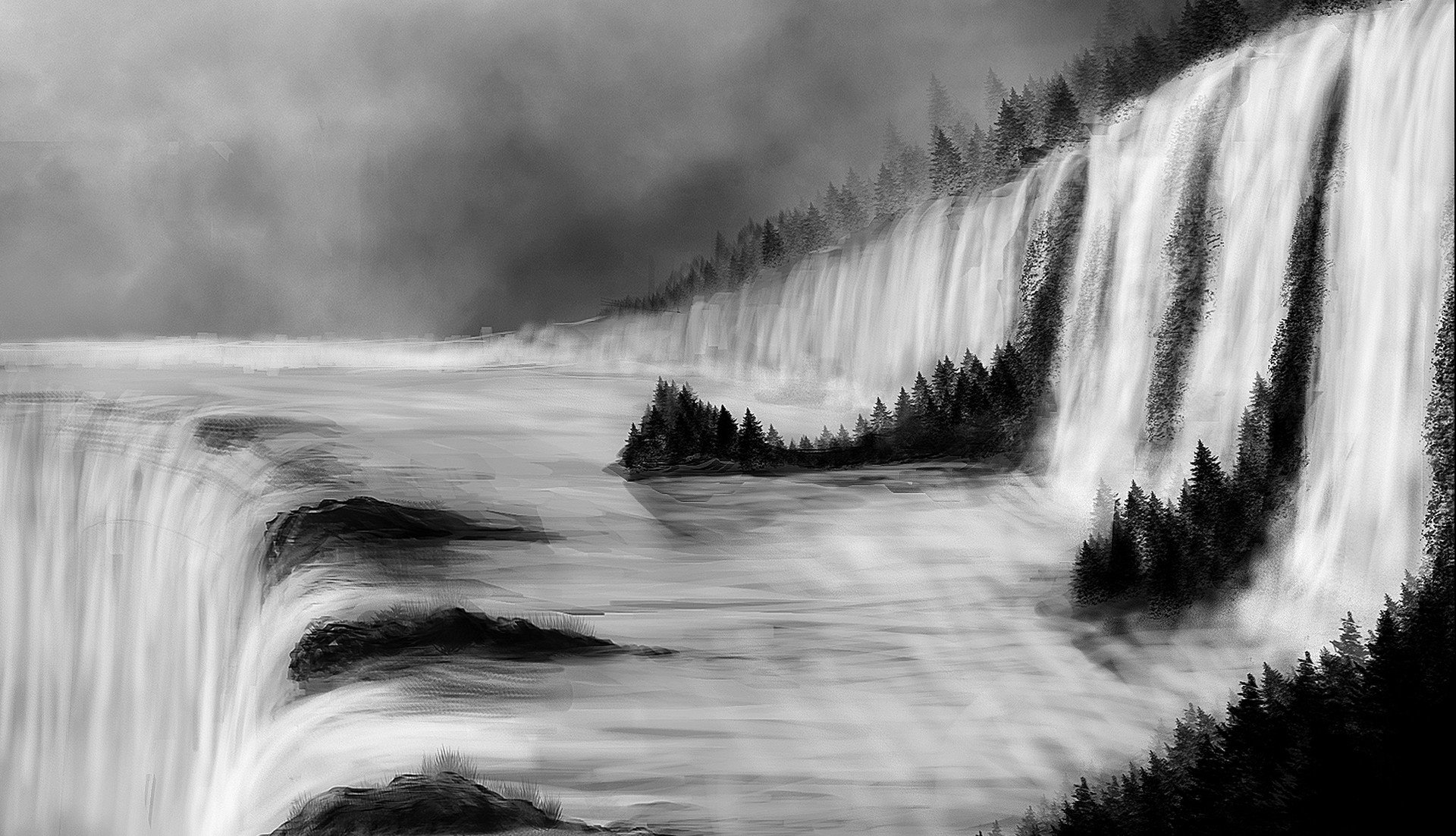 ![Чёрно-белый пейзаж]()