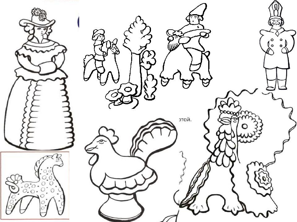 Силуэты дымковских игрушек для старшей группы Дымковская Слобода