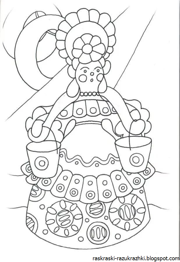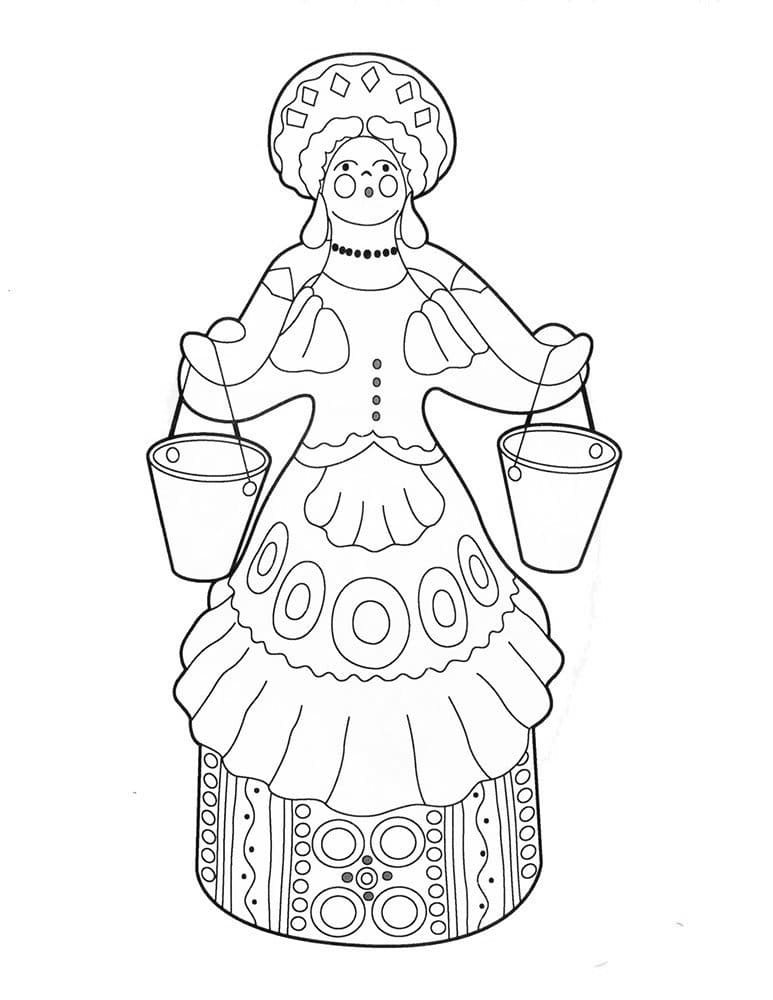 ![Водоноска Дымковская игрушка раскраска для детей]()