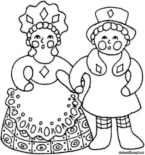 ![Раскраска народные промыслы России для детей Дымковская игрушка]()