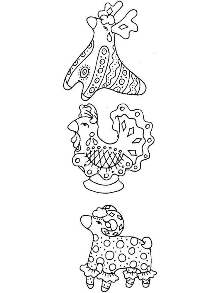 ![Раскраски Хохлома Гжель Дымковская игрушка]()