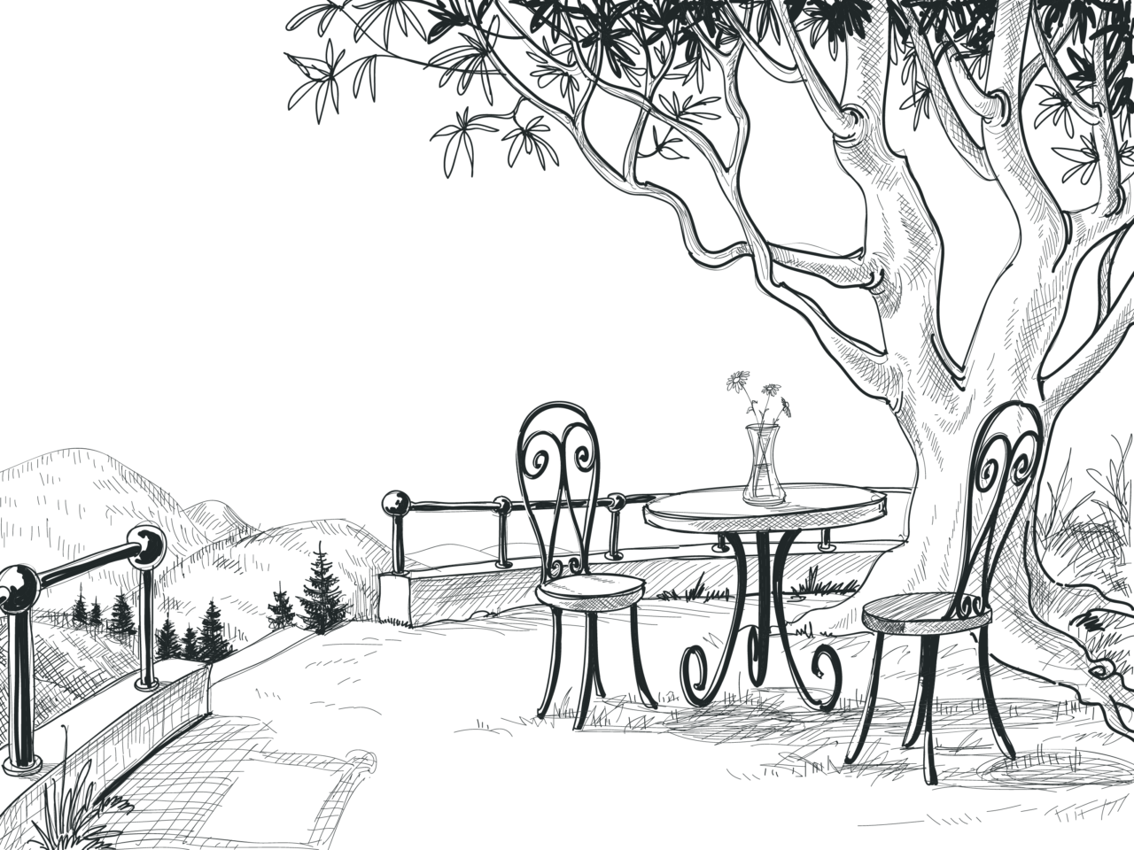 Парковый пейзаж карандашом