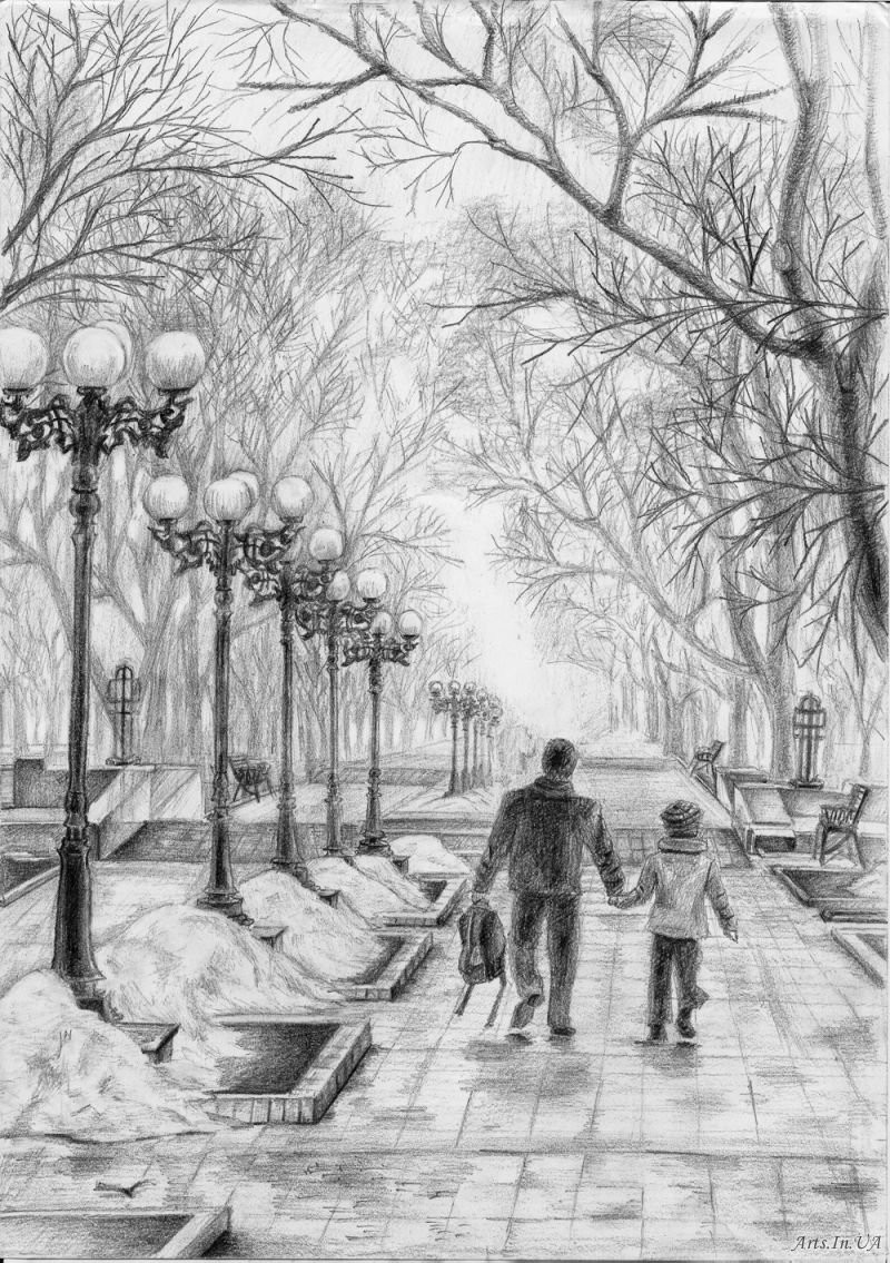 ![Пейзаж парка карандашом]()