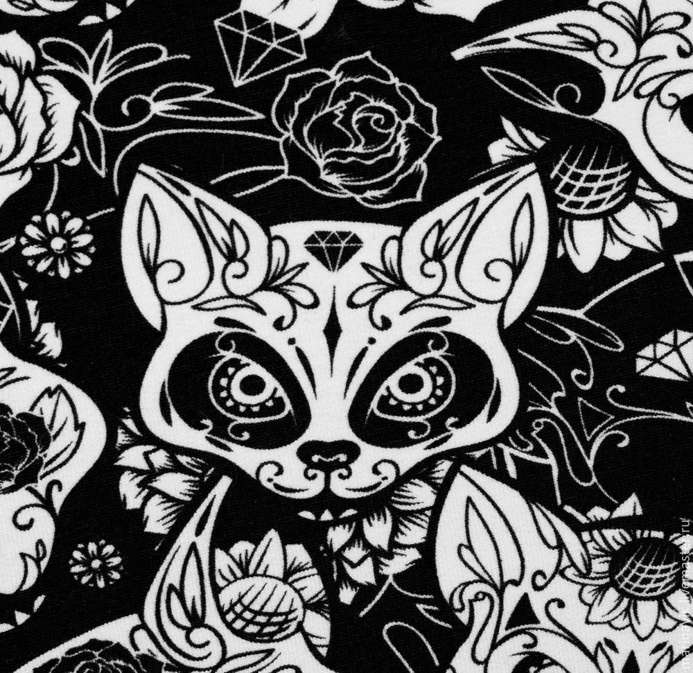 ![Белая ткань с черными цветами]()