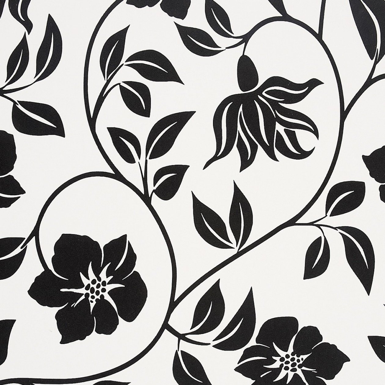 Белая ткань с черными цветами