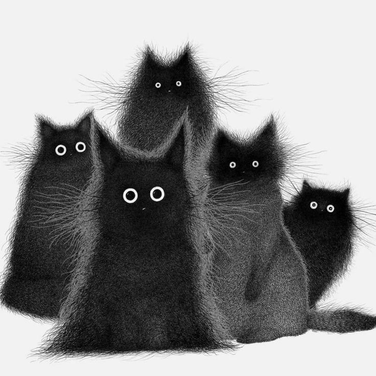 ![Черные мультяшные кошки]()
