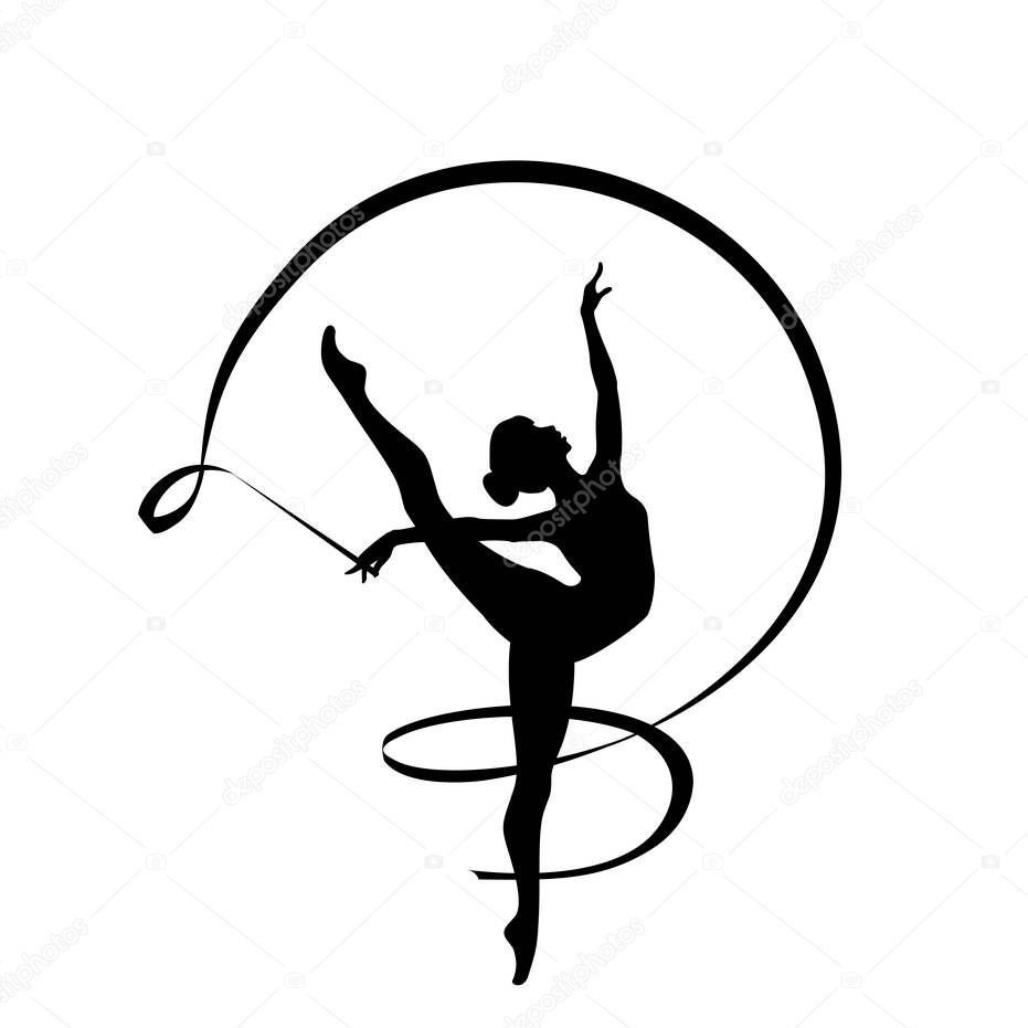 ![Гимнастка с лентой силуэт]()