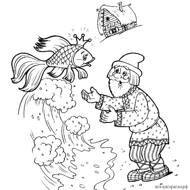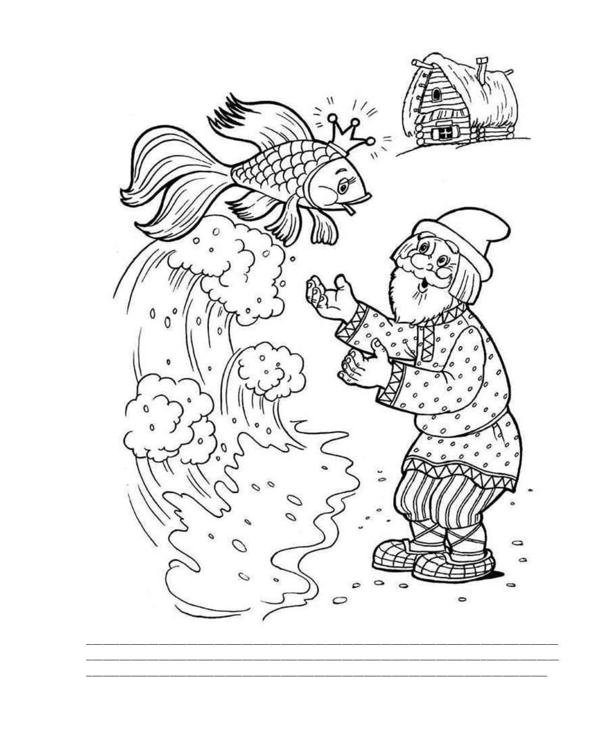 Раскраски по сказке Пушкина о рыбаке и рыбке