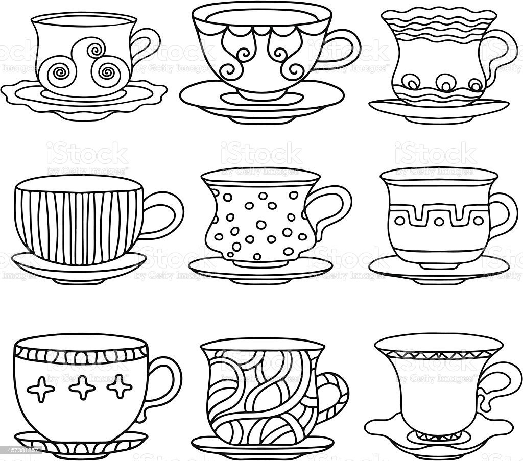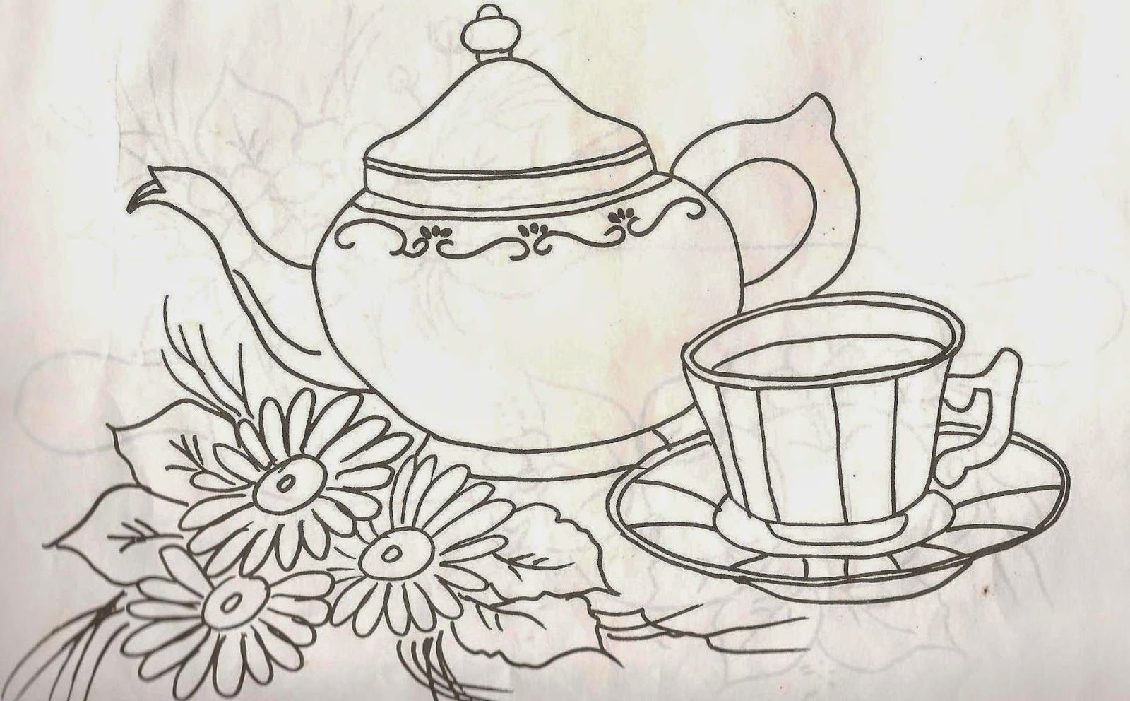 ![Рисование чайный сервиз черно-белые]()