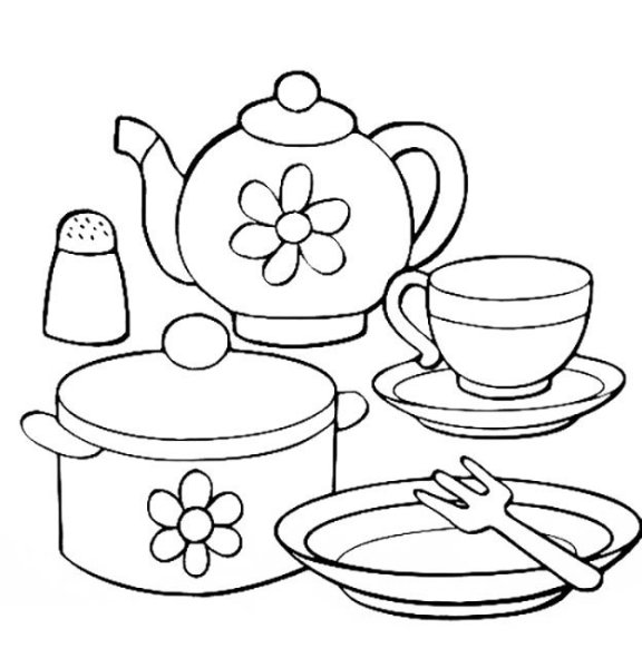 ![Чайная посуда раскраска для детей]()
