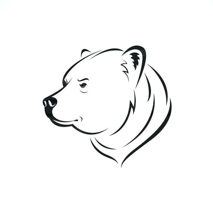 ![Голова медведя сбоку вектор чб]()