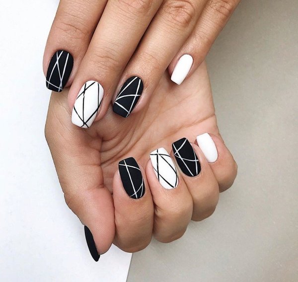![Прикольный маникюр черный с белым]()
