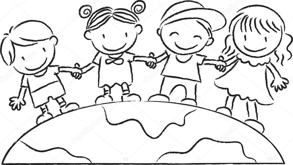 Рисовать детей вокруг земного шара
