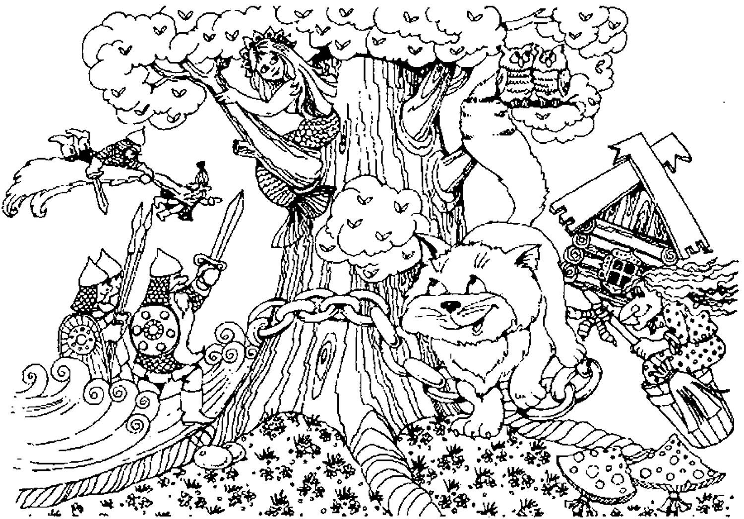 ![Раскраска по сказке у Лукоморья]()