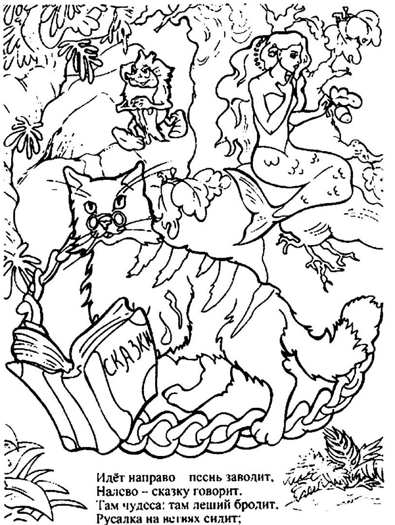 Пушкин у Лукоморья раскраска