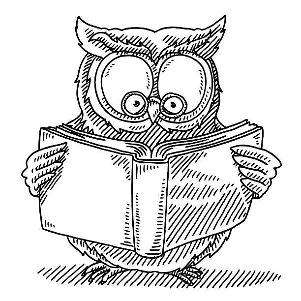 ![Сова с книжкой черно белая]()