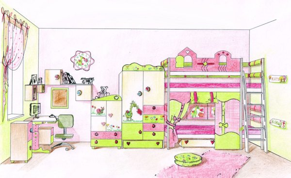 ![Детская комната с мебелью контур]()