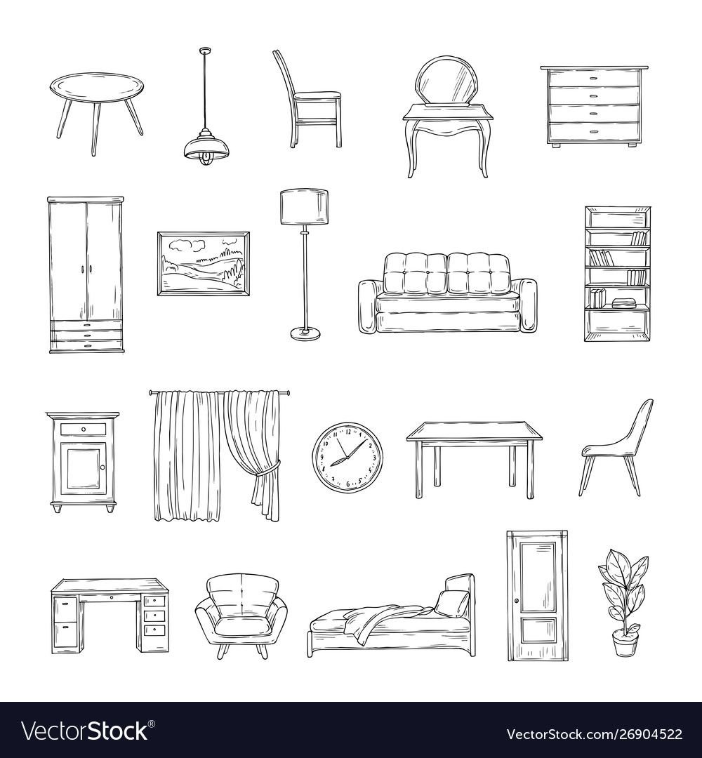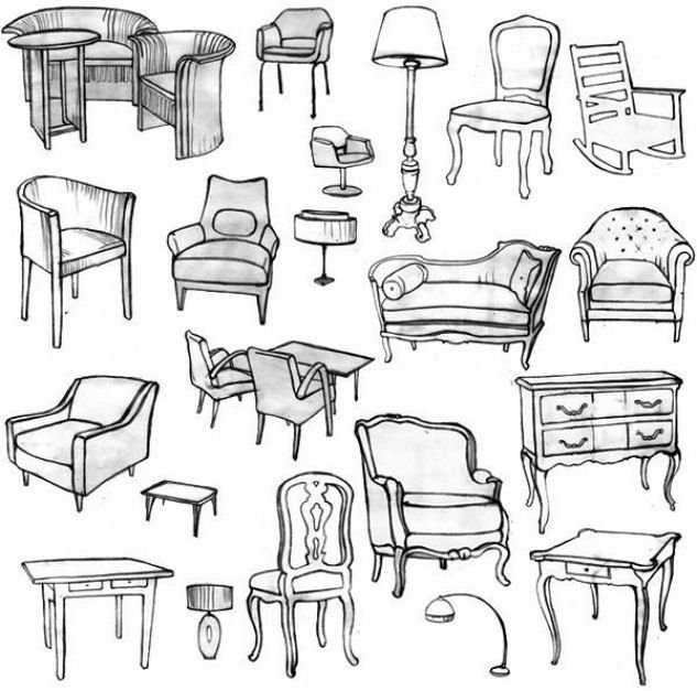 ![Зарисовки предметов мебели]()