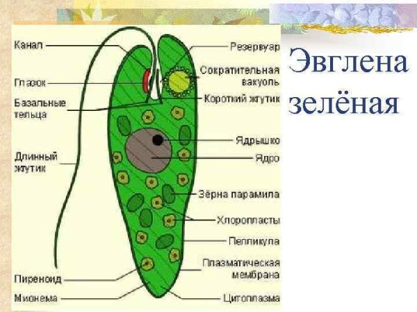 Строение клетки эвглены зеленой