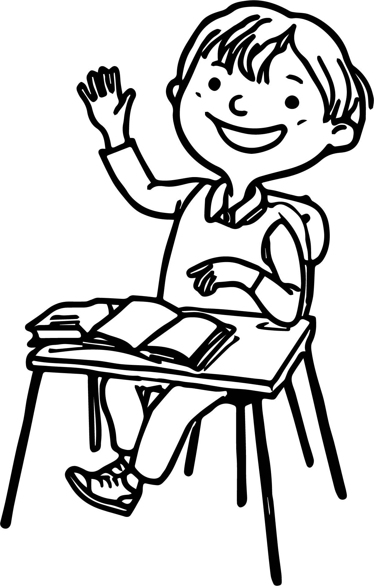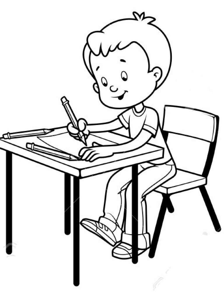 ![Мальчик за партой раскраска]()