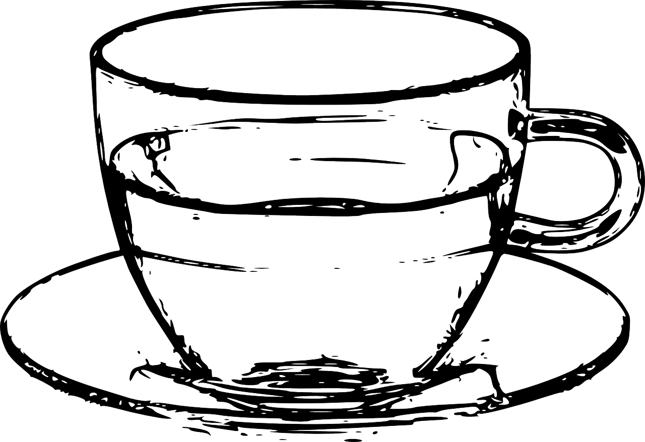 ![Чашка чая черно белая]()