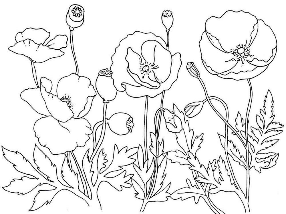 ![Раскраска поле с маками]()
