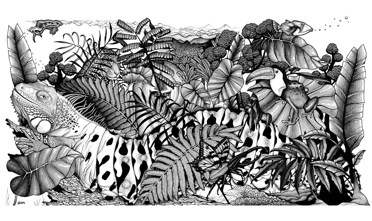 Тропический лес карандашом