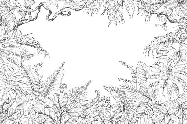 Черно-белый рисунок джунглей - это захватывающая иллюстрация, позволяющая окунуться в загадочный мир тропических лесов. Воспроизведенные в чистых черных и белых тонах, живописные образы растений, животных и различных элементов природы создают атмосферу тайны и изобилия. Черно-белое исполнение рисунка открывает возможность сконцентрироваться на деталях и текстуре, позволяя зрителю увидеть каждую линию и контур с особым вниманием. Будь то удивительные лианы, густые пальмы или экзотические животные, такой рисунок подарит ощущение приключения и загадки, открывая перед нами великолепие дикой природы джунглей.