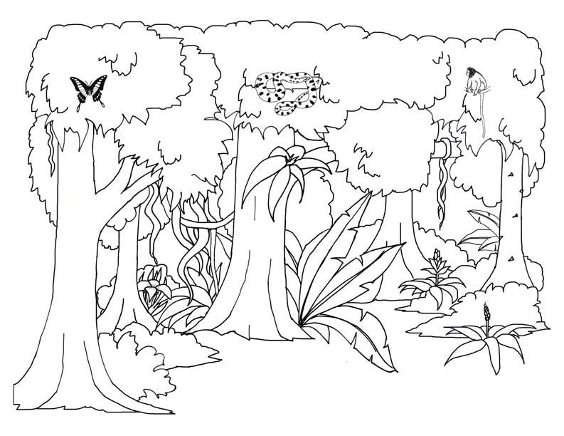 Раскраска тропический лес