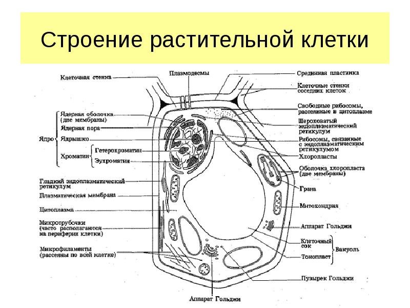 Строение растительной клетки 5 класс биология черно белый рисунок
