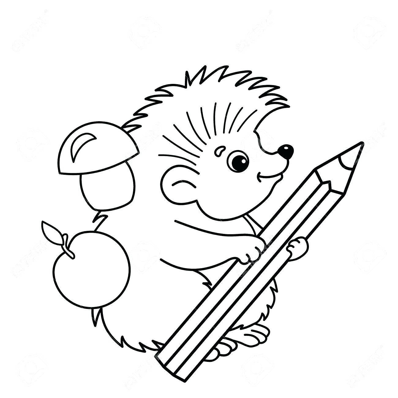 ![Ежик с карандашом раскраска]()